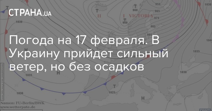 В понедельник, 17 февраля, синоптики предвещают Украине сильный ветер, но осадки на территории страны маловероятны.