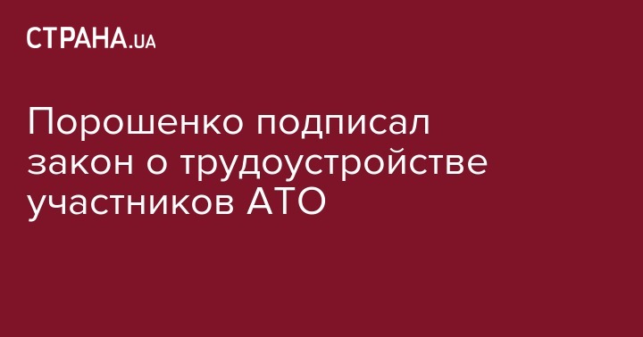 Петр Порошенко подписал закон об упрощении трудоустройства участников АТО, который устанавливает специальные квоты на предприятиях. Об этом сообщается на сайте президента Украины