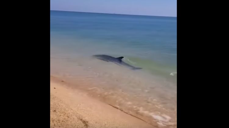 В Азовском море дельфины играли возле берега. Скриншот: YouTube/ Голос Запорожья
