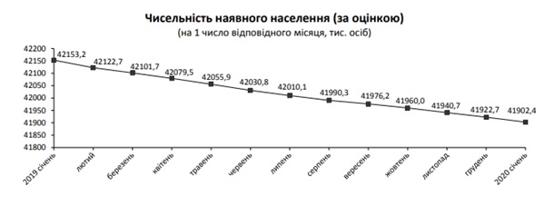 За прошлый год численность населения Украины уменьшилась на 250,8 тысяч человек. На 1 января численность наличного населения в Украине составила 41902,4 тысяч человек.
