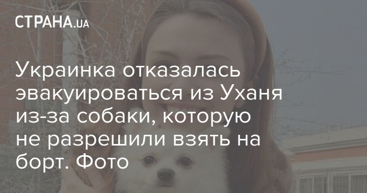 Посольство Украины не разрешило украинке Анастасии Зинченко взять с собой собаку во время эвакуации из провинции Ухань, где произошла вспышка коронавируса. Девушка не бросила пса и осталась в Ухане.