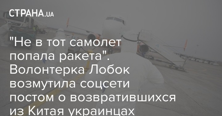 На странице киевской волонтерки Марины Лобок в Facebook вскоре после того, как в Украину прибыл самолет с эвакуированными из Китая украинцами, появился провокационный пост, который вызвал бурю негодования в сети. "Не в тот самолет попала ракета", - говорилось в посте.