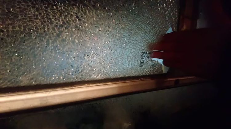 Разбитое стекло в автобусе, доставившем эвакуированных в Новые Санжары. Фото: Facebook