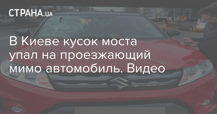 В Киеве кусок моста упал на проезжающий мимо автомобиль. Видео