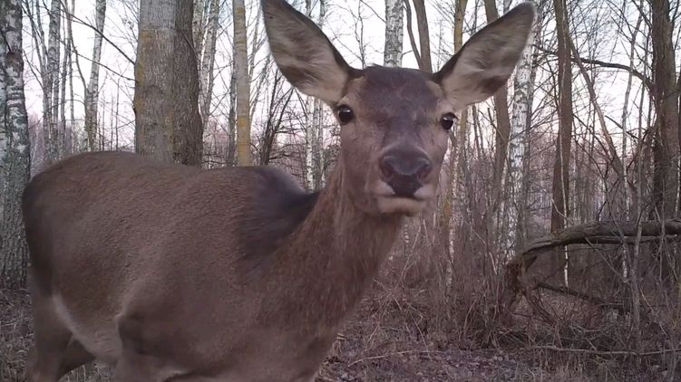 Олени в чернобыльской зоне отчужденияОлень у фотоловушки ночью