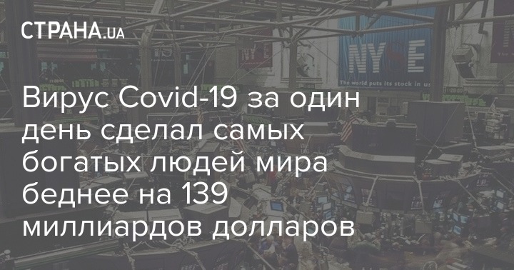 Вирус Covid-19 за один день сделал самых богатых людей мира беднее на 139 миллиардов долларов