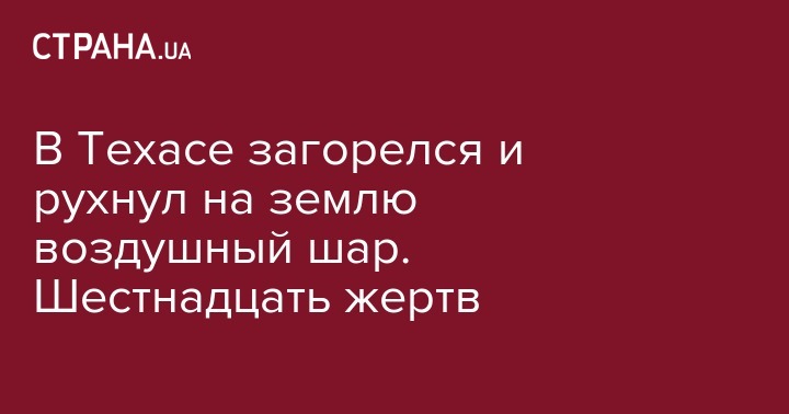 Сегодня, 30 июля, в штате Техас упал воздушный шар с шестнадцатью пассажирами на борту. Об этом сообщает ВВС, со ссылкой на местные издания.