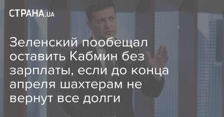 Во время Всеукраинского совещания работников угольной сферы Украины президент Владимир Зеленский пообещал закрыть долги по зарплате переде шахтерами до конца апреля. Если это не будет сделано, по словам главы государства, министры должны остаться без заработной платы.