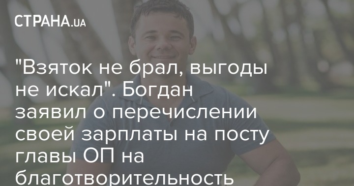 Андрей Богдан трудился на посту главы Офиса президента  бесплатно, перечисляя свою зарплату на благотворительность. А жил он за счет денег, ранее заработанных адвокатской практикой.