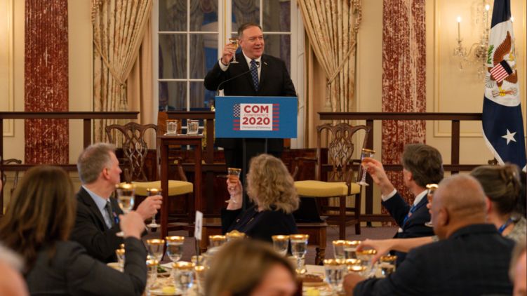 Помпео отметил, что "нарастающая милитаризация Крыма является угрозой общей безопасности", а также обвинил крымские власти в нарушениях прав и свобод человека, включая свободу вероисповедания, и ущемлении интересов крымских татар.