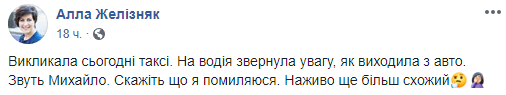 "Вызвала сегодня такси. На водителя обратила внимание, когда выходила из авто. Зовут Михаил. Скажите, что я ошибаюсь. В живую еще больше похож" - написала она.