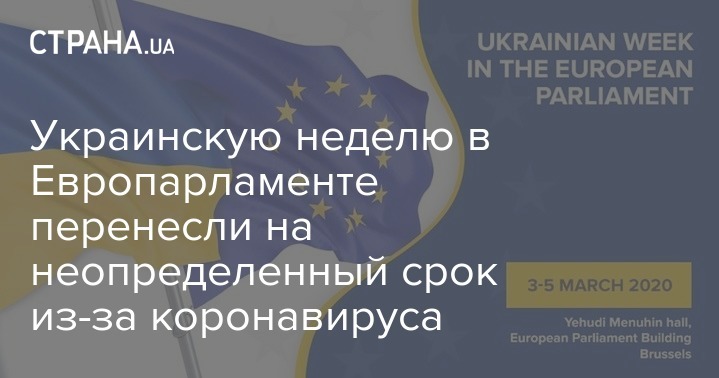 "Дорогие друзья, к сожалению, вынуждены сообщить, что запланированная на 3-5 марта украинская неделя в Европейском парламенте переносится на неопределенный срок в связи с ограничениями Европарламента о проведении массовых мероприятий из-за распространения коронавирусной инфекции COVID-19", - сказано в записи в соцсети.