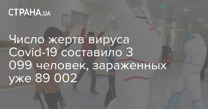По состоянию на 00:00 часов по китайскому времени вторника 3 марта, (19:00, 2 марта, по Киеву - Ред.) число заболевших новой формой пневмонии составило 89 002 человека, умерло уже 3 099 человек (здесь произошла корректирвока данных, так как вчера власти Китая сообщали о 3 141 умершем от вируса пациенте - Ред.).