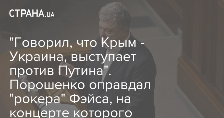 "Говорил, что Крым - Украина, выступает против Путина". Порошенко оправдал "рокера" Фэйса, на концерте которого отрывался его сын