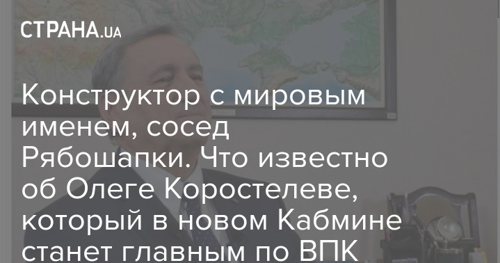 Вице-премьером по промышленности и ВПК предложили назначить Олега Коростелева - 70-летнего главу Конструкторского бюро "Луч", которое производит современное оружие и входит в состав госконцерна "Укроборонпрома".