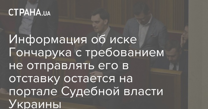Информация о том, что премьер-министр Алексей Гончарук подал в Окружной административный суд Киева иск с требованием запретить спикеру Верховной Рады выносить в повестку дня вопрос об его отставке, остается размещенной в списке на рассмотрение на сайте Судебной власти Украины.