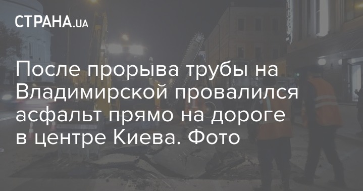После прорыва трубы на Владимирской провалился асфальт прямо на дороге в центре Киева. Фото