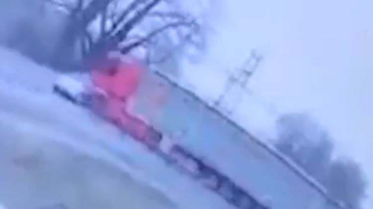 Появилось видео страшного дтп под Киевом, где грузовик раздавил легковушку. Скриншот из видео