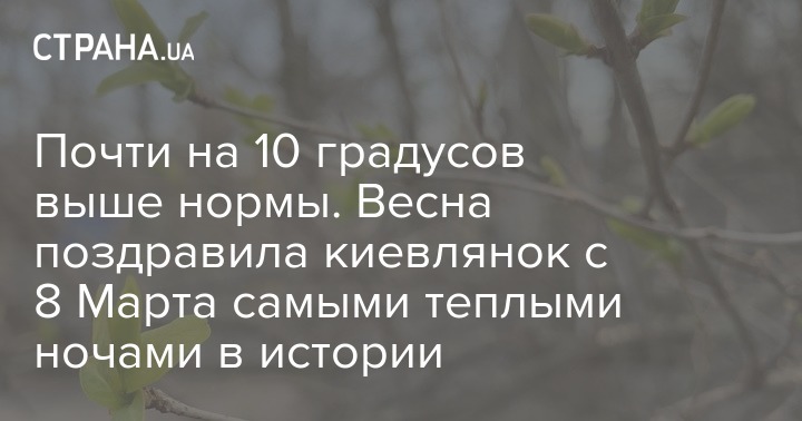 Ночь на 8 марта в Киев оказалась рекордно теплой. Столбик термометра не опустился ниже 7 градусов, что на 2,2 градуса выше, чем это было в 1906 году.