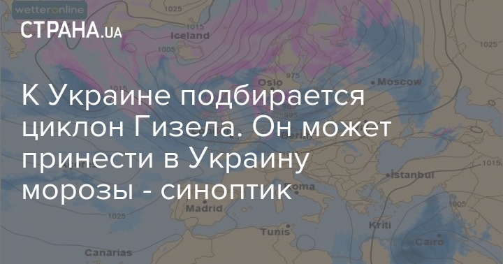К Украине подбирается циклон Гизела. Он может принести в Украину морозы - синоптик