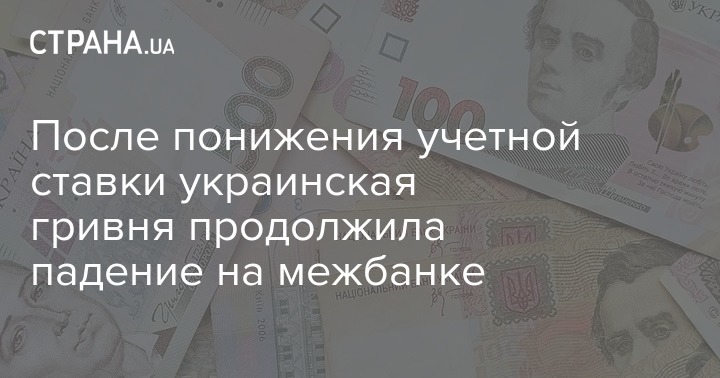 После понижения учетной ставки украинская гривня продолжила падение на межбанке
