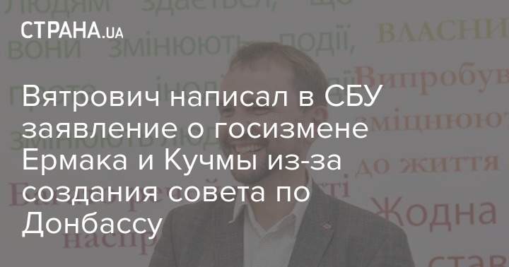 Нардеп из фракции Европейская солидарность, экс-глава Института нацпамяти Владимир Вятрович просит СБУ открыть дело о госизмене против Андрея Ермака и Леонида Кучмы из-за документа о создании консультационного совета с "ЛДНР".