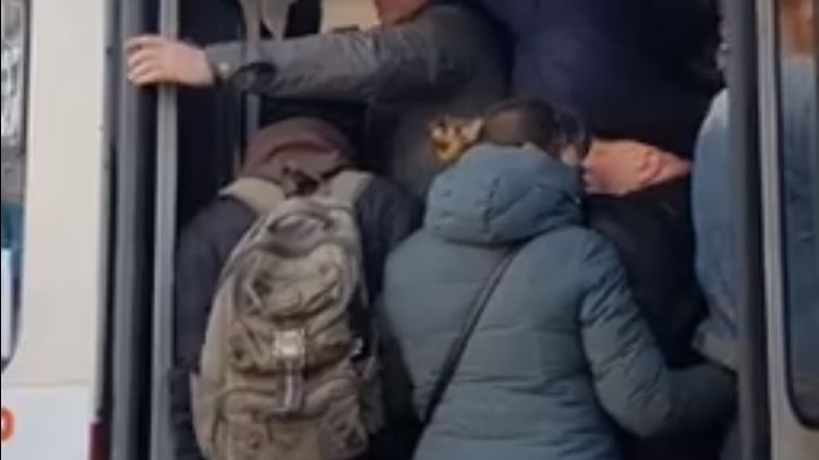 В Харькове в первый день без метро люди проводят на остановках по часу, а трамваи и маршрутки забиты битком. Видео