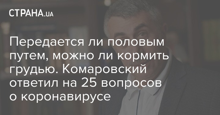 Известный украинский врач Евгений Комаровский ответил на 25 вопросов о коронавирусе, которые он получил от своих подписчиков. Видео опубликовано на youtube-канале "Доктор Комаровский".