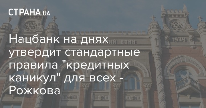 Нацбанк на днях утвердит стандартные правила "кредитных каникул" для всех - Рожкова