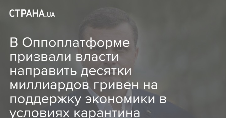 В Оппоплатформе призвали власти направить десятки миллиардов гривен на поддержку экономики в условиях карантина