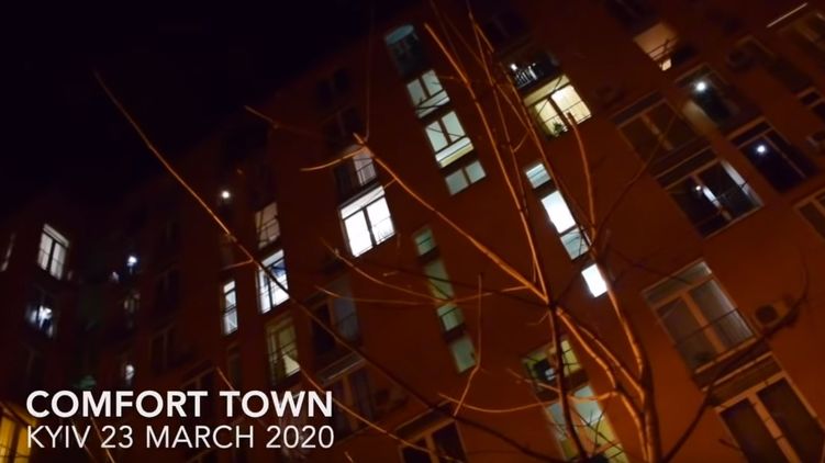 Как утверждается в подписи к ролику, в акции приняли участие жители "Комфорт Тауна", дома 13к. Таким образом киевляне продолжили традицию пения в своих домах, начатую гражданами европейских стран, которые находятся в условиях карантина.