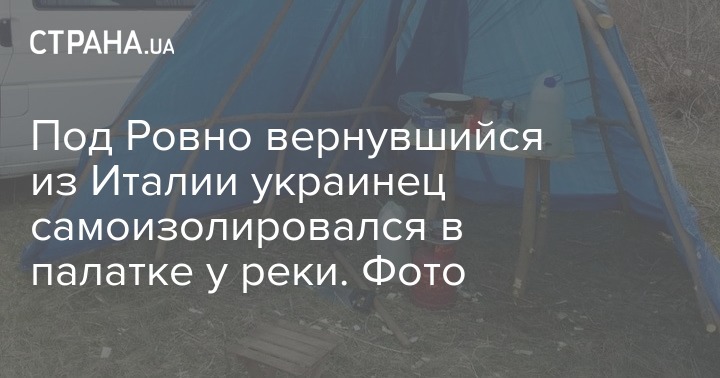 В Ровенской области мужчина, который недавно вернулся из Италии, самоизолировался, разбив палатку у реки. Таким образом он решил обезопасить от возможного заражения свою жену и детей. Об этом сообщается на странице Гощанского сельсовета в соцсети.