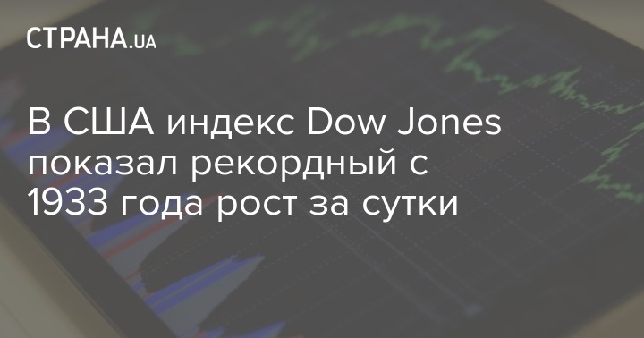 Индекс Dow Jones показал рекордный однодневный рост с 1933 года. Он поднялся на 11,37% до 20.704,91 пункта после анонсированного в США принятия соглашения о масштабном пакете мер поддержки экономики в связи с кризисом, вызванным коронавирусом.