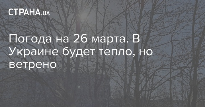 В четверг, 26 марта, в Украине ожидается солнечная погода без осадков. Синоптики обещают, что днем будет тепл, но ветрено. Об этом сообщает Укргидрометцентр.