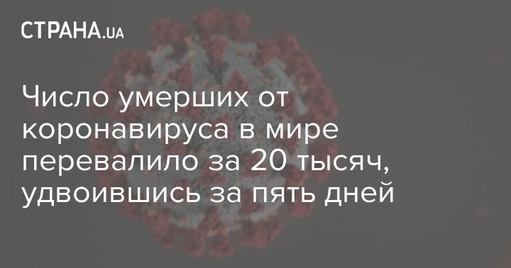 Общее число жертв среди заразившихся коронавирусом нового типа в мире превысило 20 тысяч, удвоившись с 20 марта.