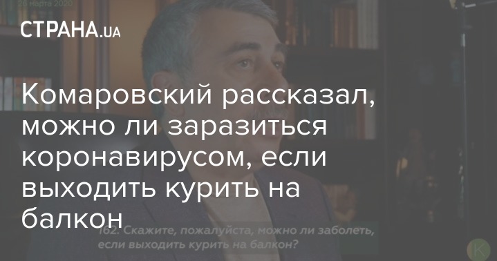 "Если перед этим на балкон выходил человек с коронавирусом и облапал там все. Если у вас в руках - пачка сигарет, которую вы облапали и на этой пачке есть сейчас коронавирус. Если на ваш балкон сверху или снизу плюнули соседи, тогда заболеть можно. Но в принципе, стоя на балконе, в процессе курения заболеть коронавирусной инфекцией нельзя. Шансов, что вирус на ваш балкон залетит с улицы, равен нулю", - ответил доктор Комаровский.