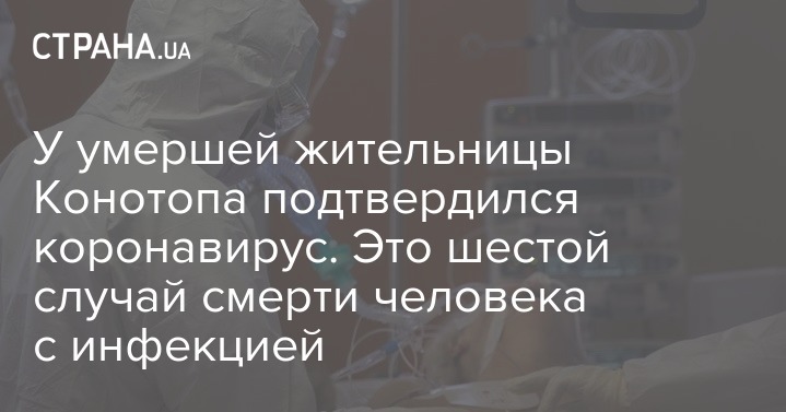 У 76-летней женщины, которая два дня назад скончалась от пневмонии в Конотопе Сумской области, подтвердилось заболевание коронавирусом. Об этом в соцсети сообщил мэр Конотопа Артем Семенихин.