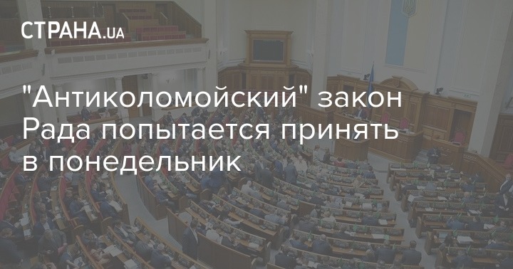 По информации "Страны" антиколомойский закон (о запрете возврата "Приватбанка") также постараются запустить на голосование в понедельник. В 9 утра понедельника его начнёт рассматривать профильный комитет Рады.