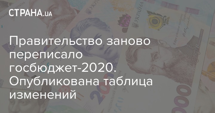 Правительство заново переписало госбюджет-2020. Опубликована таблица изменений