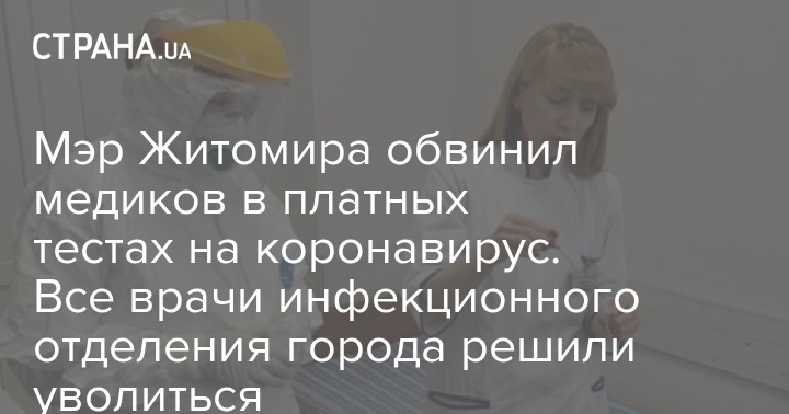 В Житомире коллектив инфекционного отделения городской больницы № 1 заявил, что готовит заявления на увольнение после того, как мэр города Сергей Сухомлин обвинил их в том, что они требовали "благотворительные взносы" за тесты на коронавирус.