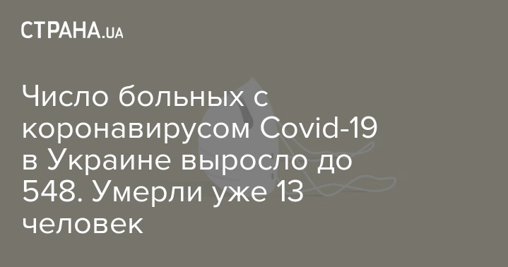 Число больных с коронавирусом Covid-19 в Украине выросло до 548. Умерли уже 13 человек
