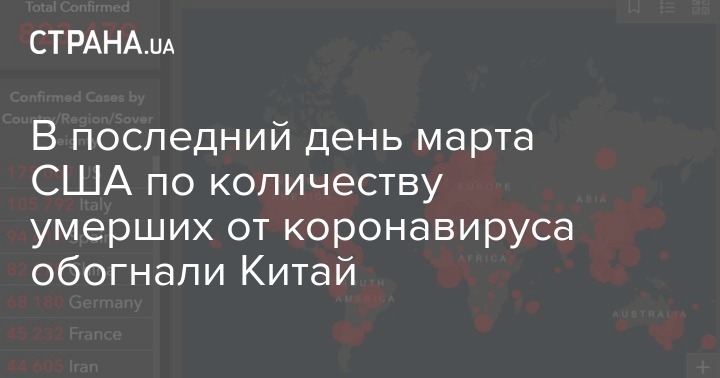 В последний день марта США по количеству умерших от коронавируса обогнали Китай