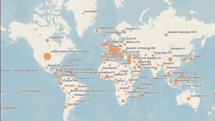 Данные по заражению Сovid-19 на 31 марта, фото: experience.arcgis.com