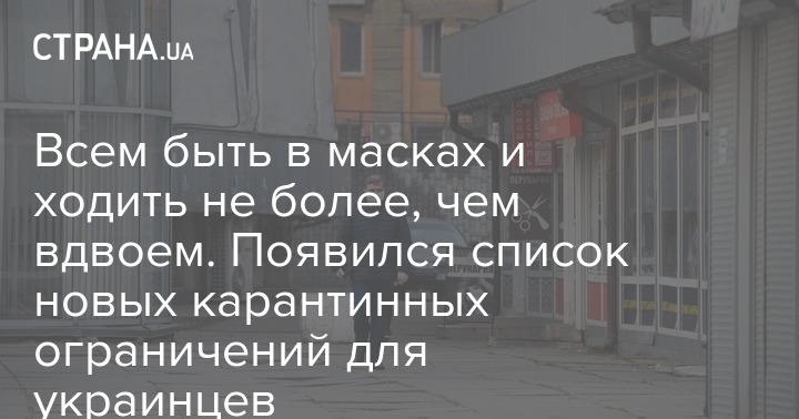 Всем быть в масках и ходить не более, чем вдвоем. Появился список новых карантинных ограничений для украинцев