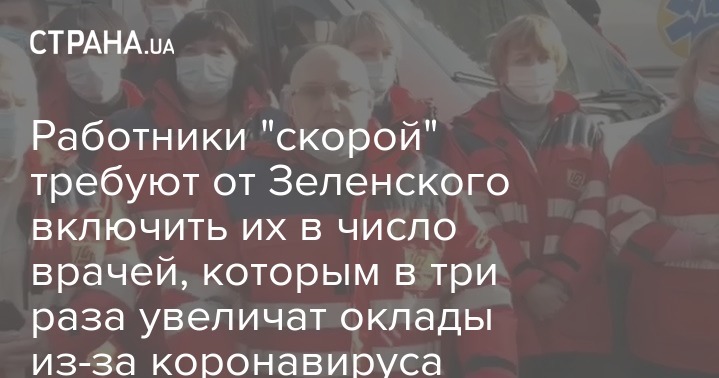 Работники службы экстренной медицинской помощи Запорожской области обратились к президенту Владимиру Зеленскому с требованием включить сотрудников неотложки в число тех врачей, которым в три раза увеличат оклады во время пандемии коронавируса.