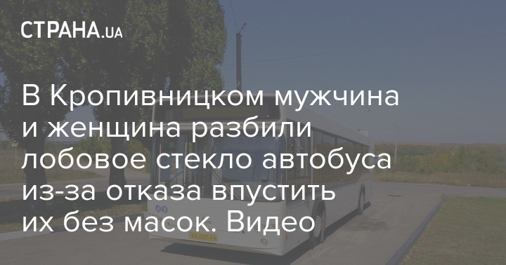 В Кропивницком мужчина и женщина разбили лобовое стекло автобуса из-за отказа впустить их без масок. Видео