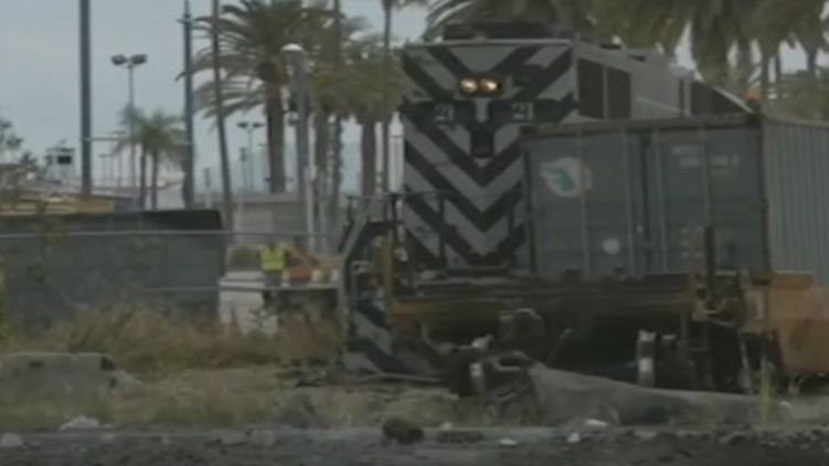 Поезд Pacific Harbour Line сошел с рельсов и остановился в 200 метрах от пришвартованного к берегу военного корабля.