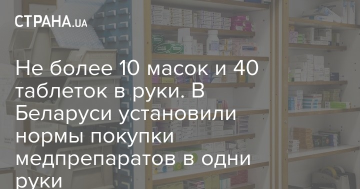 "В связи с резко возросшим спросом на некоторые наименования лекарственных средств, медицинских изделий и других товаров аптечного ассортимента министерство здравоохранения Республики Беларусь устанавливает с 10.04.2020 до 01 .07.2020 нормы единовременной реализации в аптеках населению на некоторые товары", - говорится в сообщении министерства.