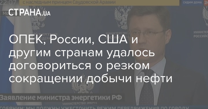 Министры энергетики стран G20 в режиме видеоконференции около 10 часов обсуждали тему стабилизации мирового рынка нефти. В итоге они согласовали условия новой сделки.