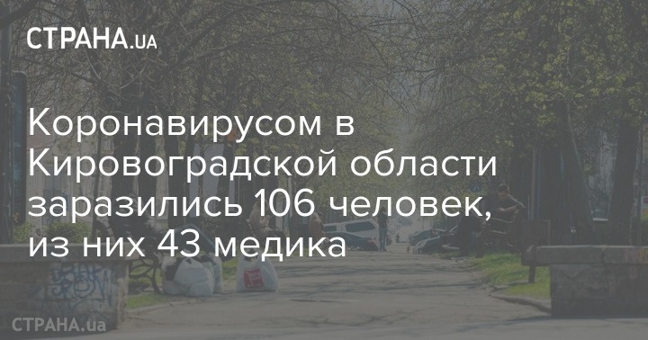 Губернатор Кировоградской области Андрей Балонь сообщил, что по состоянию на 11 апреля, количество зараженных коронавирусом в регионе достигло 106 человек. Из них 6 случаев летальные. Заражены 43 медика.